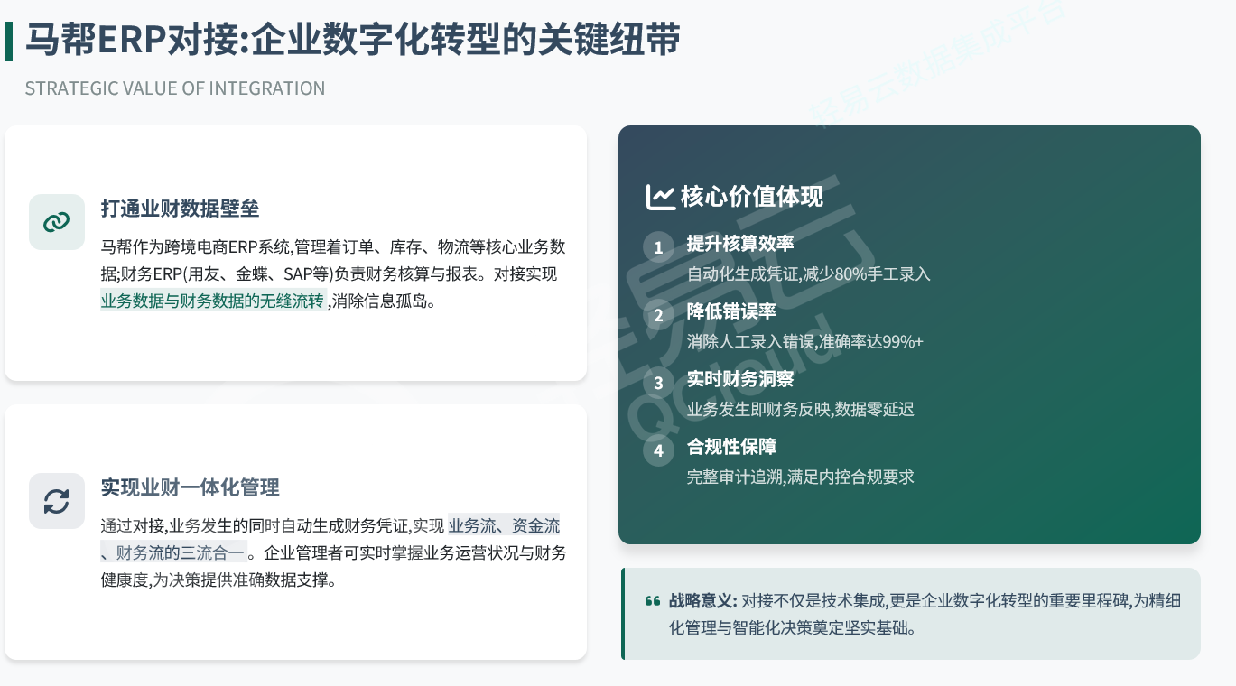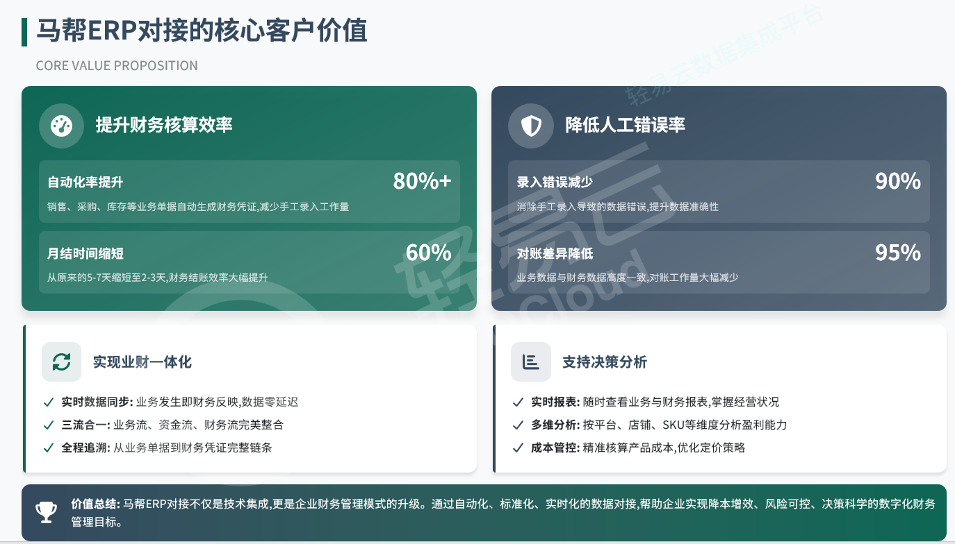 通过数据集成平台打通马帮与财务ERP,企业实现了三个层面的业务升级: