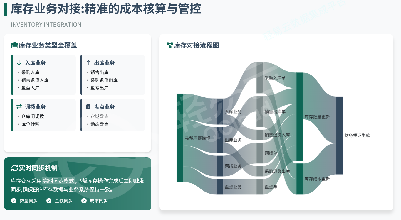 库存是业务与财务的交汇点,任何库存操作都需同步触发财务反映: