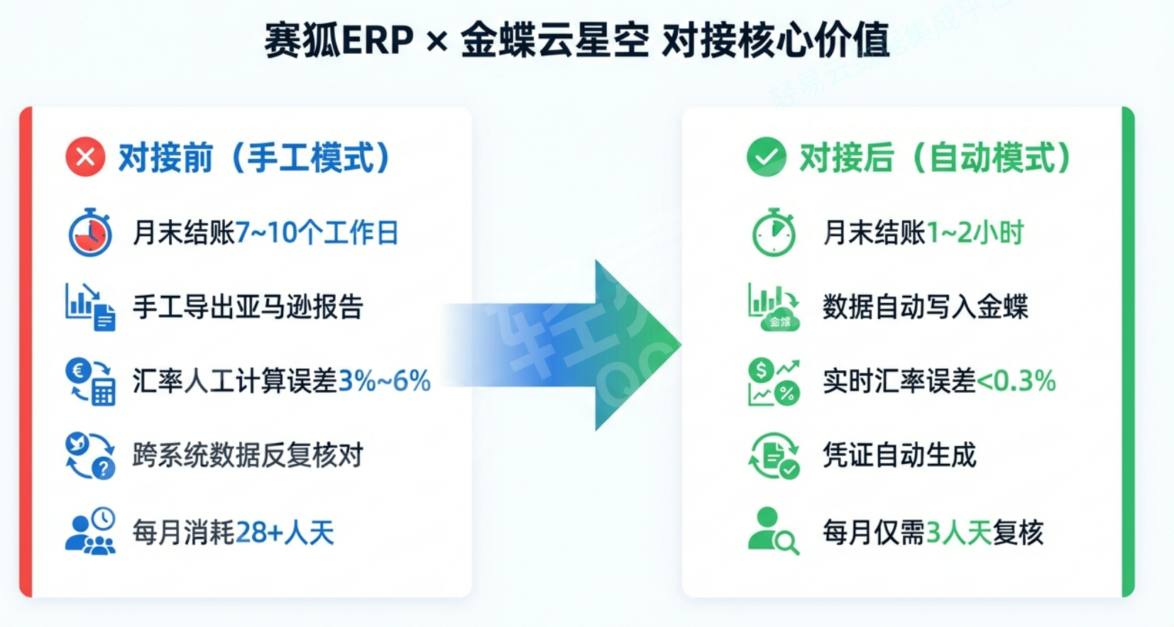 | 环节 | 对接前(纯手工) | 对接后(自动) |