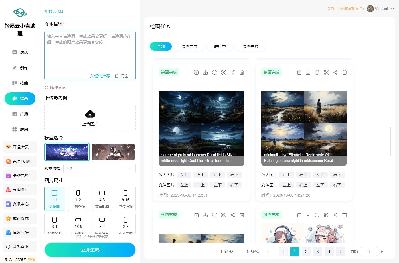 轻易云AI助手不仅具备常规功能,还集成Midjourney绘画和stablediffusion绘画技術,将艺术创作带入日常运作中。